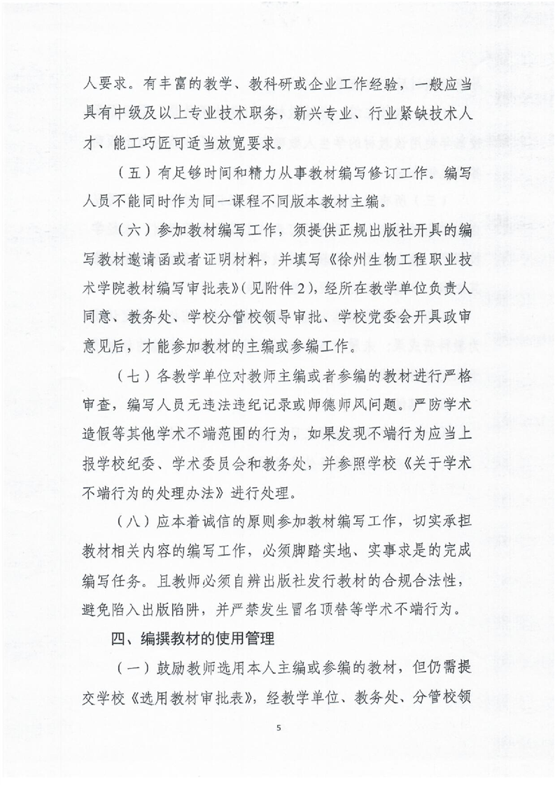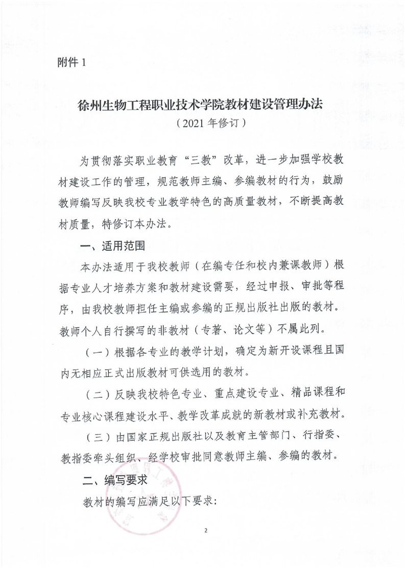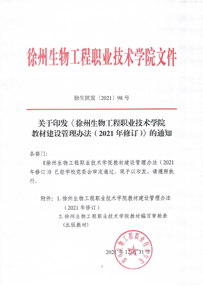 徐州生物工程职业技术学院教材建设管理办法(2021年修订)